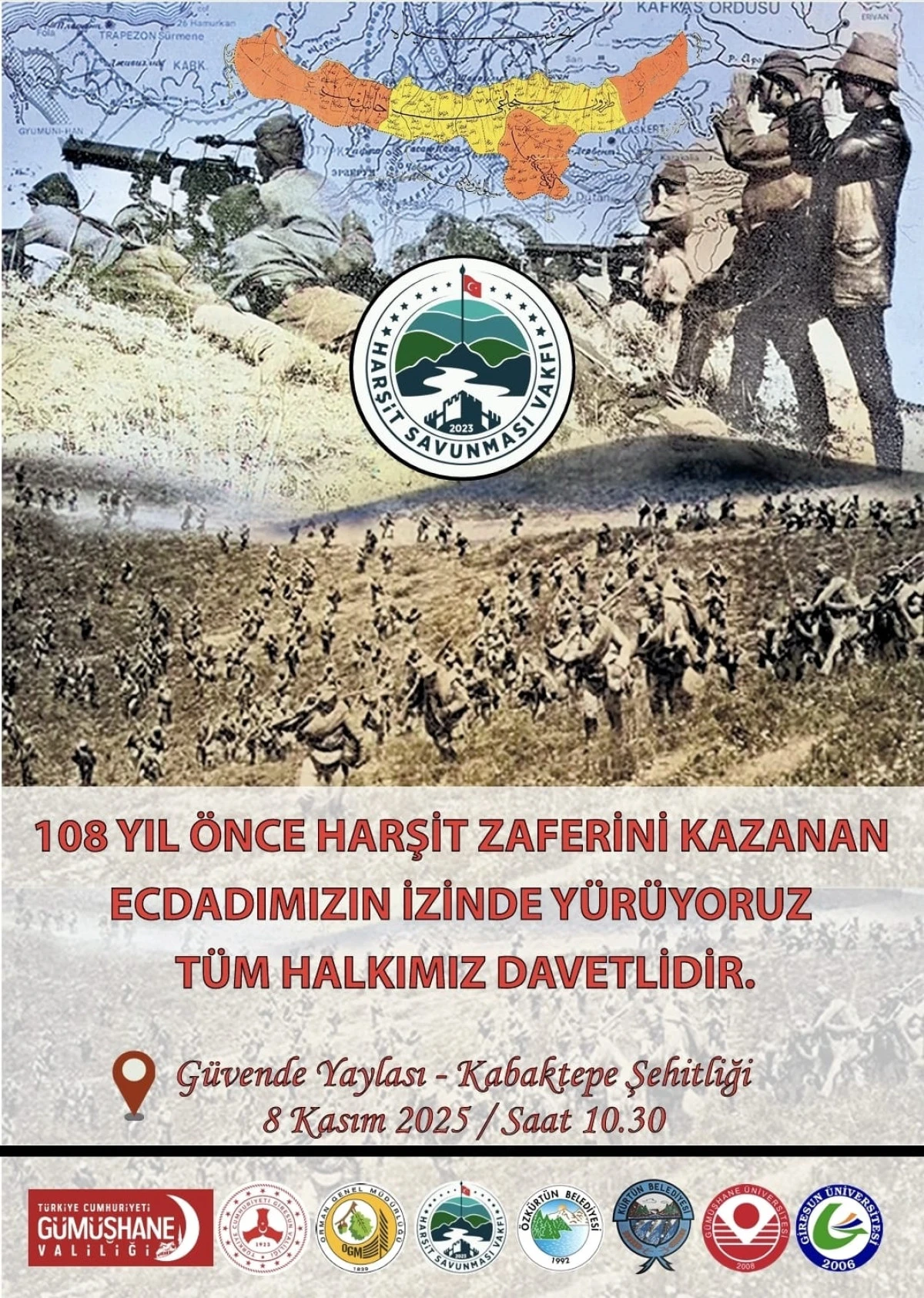 Birinci Dünya Savaşı Kafkas Cephesi’nde Harşit Savunması içerisinde yer alan Kabaktepe’ye yönelik Taarruz Harekâtı’nın 108. yılı anısına “Şehitlere Vefa ve Zafer Yürüyüşü” düzenleniyor.