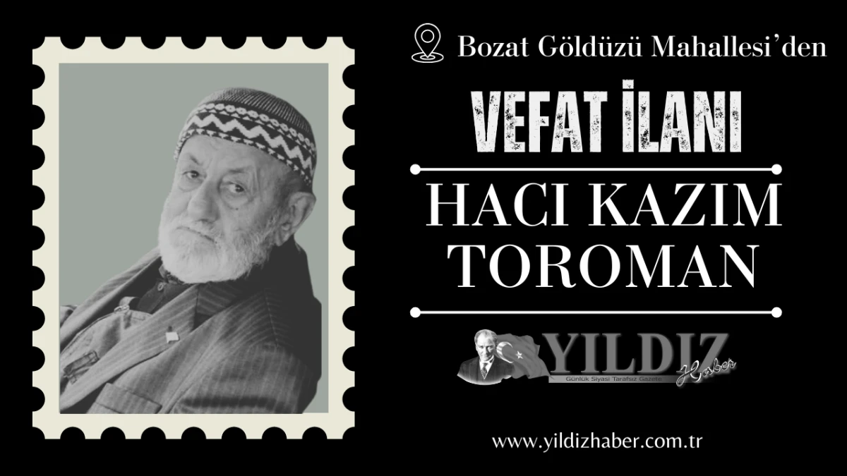 Toramanoğulları’ndan merhum Şakir Toramanin oğlu, Hacı Kazım Toraman vefat etti.