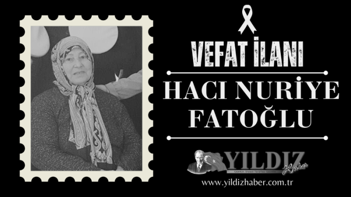 Fatoğulları’ndan Merhum Ahmet Fatoğlu’nun eşi Çakıroğulları’ndan Merhum Muharrem Çakır’ın kızı Aslan, İhsan ve Fatma Fatoğlu’nun anneleri Hacı Nuriye Fatoğlu vefat etti.