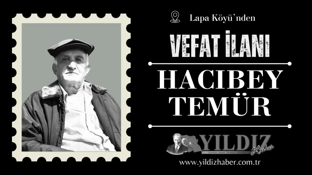 Giresun Lapa Köyü'nden, merhum Fikri Temür'ün oğlu; AK Parti Giresun Milletvekili Ali Temür'ün amcasının oğlu Hacıbey Temür vefat etti.