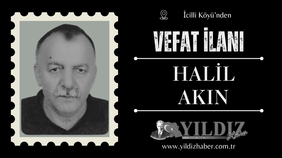 İcilli Köyünden Memiloğullarından merhum Kamil Akın’ın oğlu, merhum Dudu’nun eşi, Elif, Emel ve Ayşe’nin babaları, Mücahit Yüksel ve Zinet’in kardeşi, Öner Dikgöz ve Sanayi Esnaflardan Erol Taş’ın kayınpederi Halil Akın vefat etti.