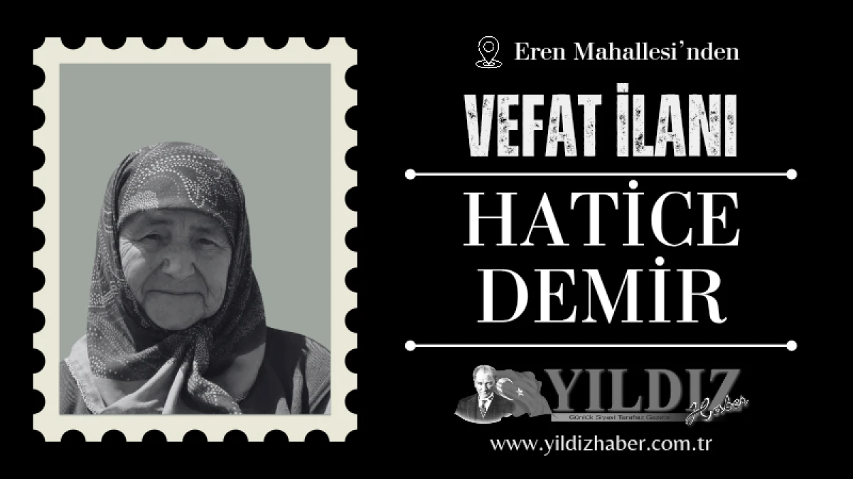 Merhum Naci Demir, Merhume Zekiye Demir, Necmi Demir, Selma Özkurt, Şenay Güneş, Aynur Çark’ın anneleri Hatice Demir'in cenazesi 25 haziran çarşamba (bugün) öğle namazına müteakip Eren Merkez camisinde kılınacak cenaze namazından sonra aile kabristanlığında toprağa verilecek.