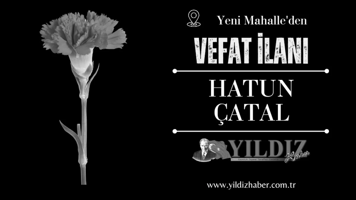 Merhum Salih Çatal’ın eşi; Mesut, Bahtiyar, Sevinç, Zeliha ve Medine Aydemir’in anneleri Hatun Çatal'ın cenazesi 5 Nisan Pazar günü(bugün) ikindi namazına müteakip Yenimahalle Halisbey Camii’nde kılınacak cenaze namazından sonra aile kabristanlığında toprağa verilecek.