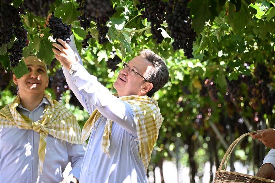 Vali Enver Ünlü, “Spil Karası erkenci üzüm çeşidinin hasadına başlamanın gururunu yaşıyoruz. Üzümün başkenti Manisa’da hasat sezonu, bağ bozumu sürüyor. Büyük bölümünü yüzde 92’ni yetiştirdiğimiz Çekirdeksiz Sultaniye Üzümün yaş ve kuru yaklaşık yıllık ülkemize 600 milyon dolar üzerinde ihracat geliri getiren üzümümüzde de hasat başlayacak. Bu sezon sıcaklar erken başladı bundan dolayı birtakım sıkıntılar yaşadık, dolu zararı hasıl oldu ama Tarım Müdürlüğümüzün destekleriyle oradan kaynaklanan hasarı en aza indirmeye çalıştık. Bu tabii sembolik bir hasat. Bütün çiftçilerimize kazasız belasız, bol kazançlı bir sezon diliyorum. Üzümü önce kendimiz kullanacağız. Kullanıldığı alanları çeşitlendireceğiz. Kuru üzüm gerçekten şifa ve vitamin kaynağı, enerji deposu. Üzümün iç piyasada kullanıldığı alanları çeşitlendireceğiz ki bununla birlikte ihracat ve üretim kapasitemiz artsın” dedi.