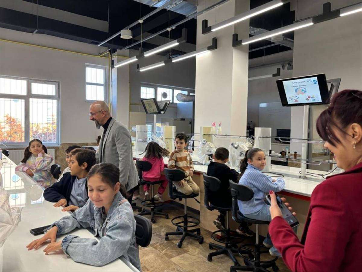 Mikroskopta yapılan incelemede ellerde gözle görülemeyen mikropları tespit eden çocuklar, doğru el hijyeninin bu mikroplarla mücadeledeki etkisini uygulayarak öğrendi.