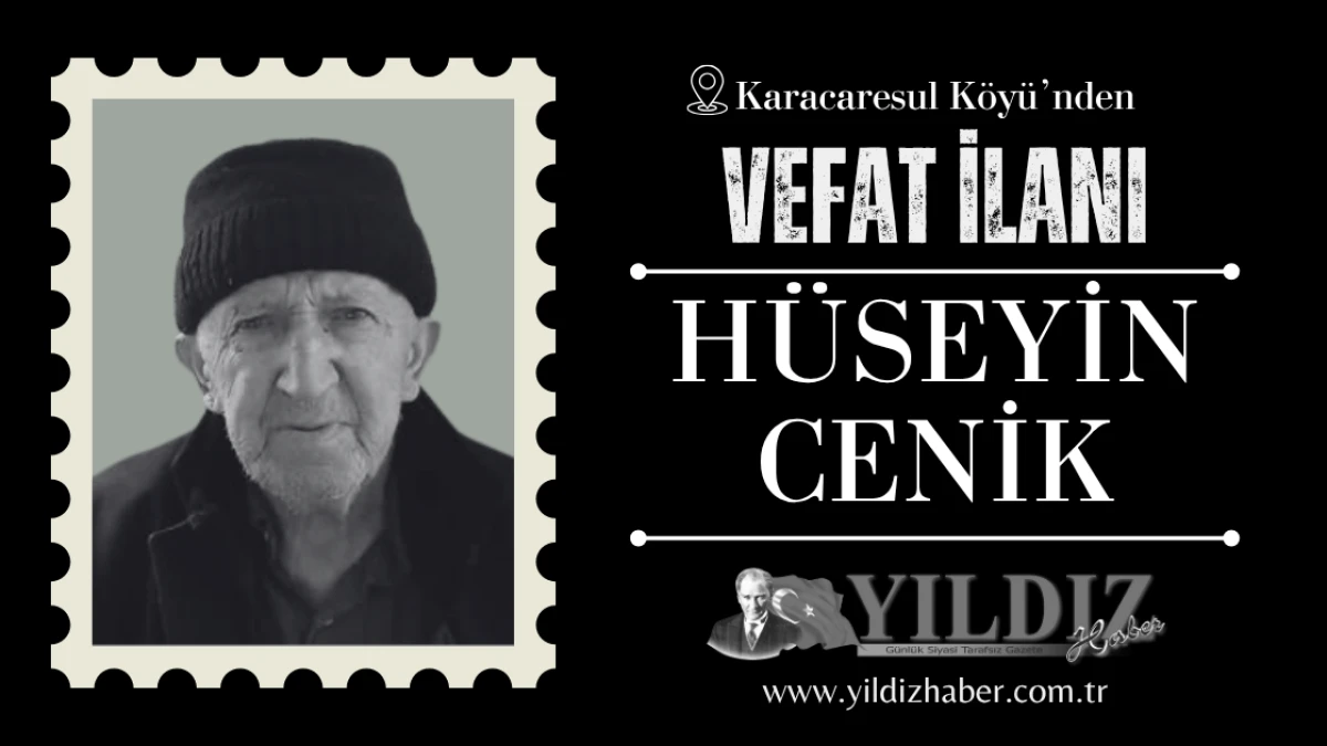 Karacaresül Köyü’nden, Canuoğulları’ndan, merhum Ömer Cenik’in oğlu; Halis, Fatma, Faruk, Cemalettin, Hamza ve Ali`nin babaları; Elmas Cenik'in eşi Hüseyin Cenik vefat etti.