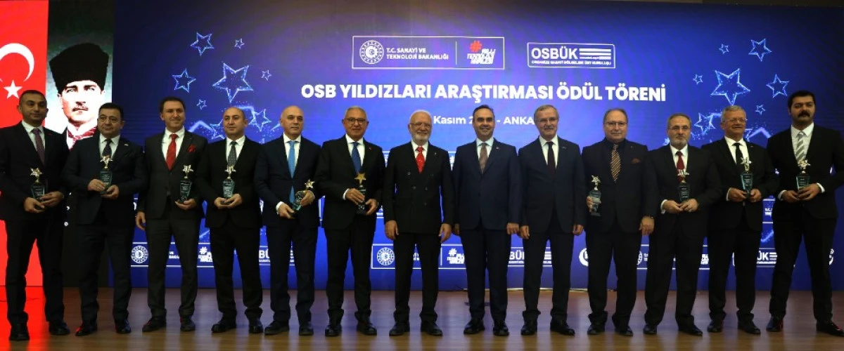 Organize Sanayi Bölgeleri Üst Kuruluşu (OSBÜK) tarafından bu yıl beşincisi düzenlenen OSB Yıldızları Araştırması Ödül Töreni, Sanayi ve Teknoloji Bakanı Mehmet Fatih Kacır’ın katılımıyla Ankara’da gerçekleştirildi.