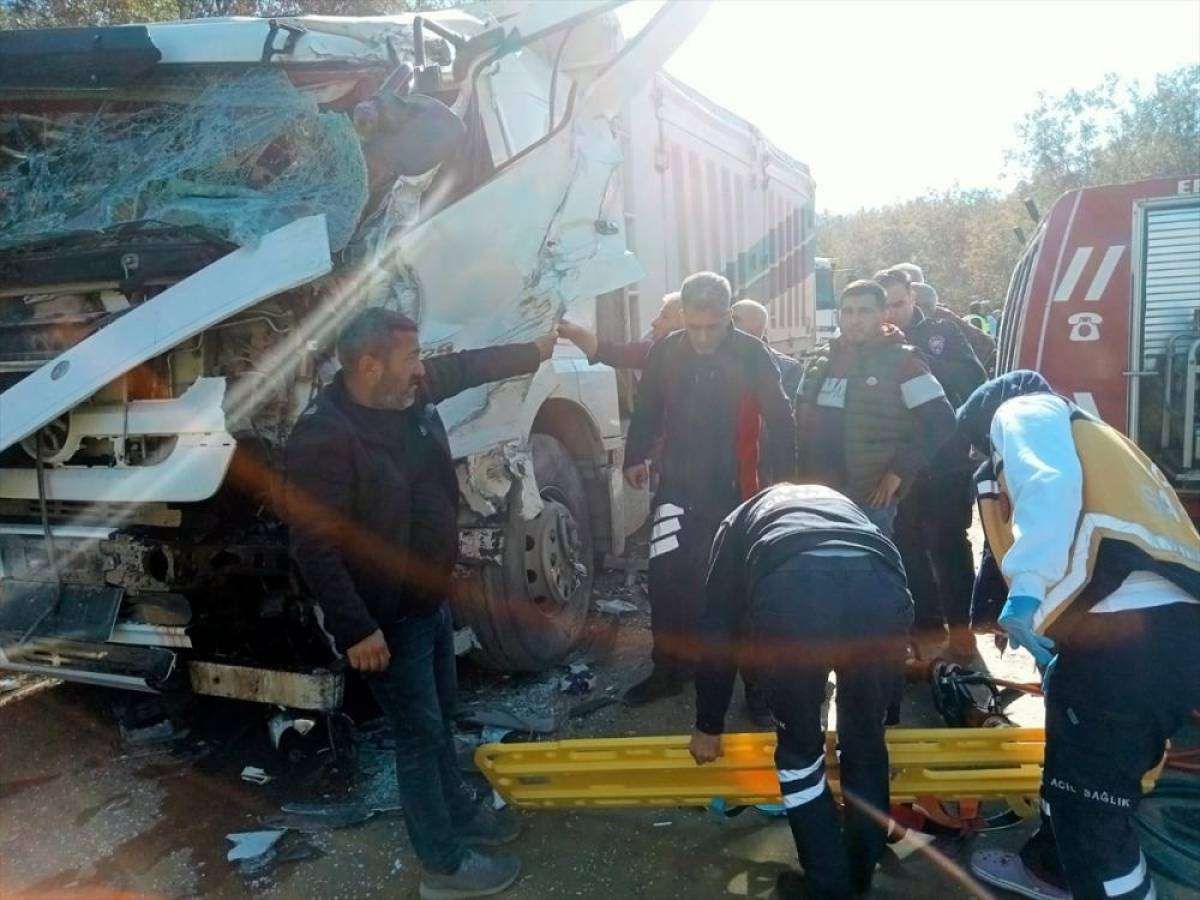 Kazada, sürücüler yaralandı. Kamyonda sıkışan M.Ç. itfaiye ekipleri tarafından çıkarıldı.