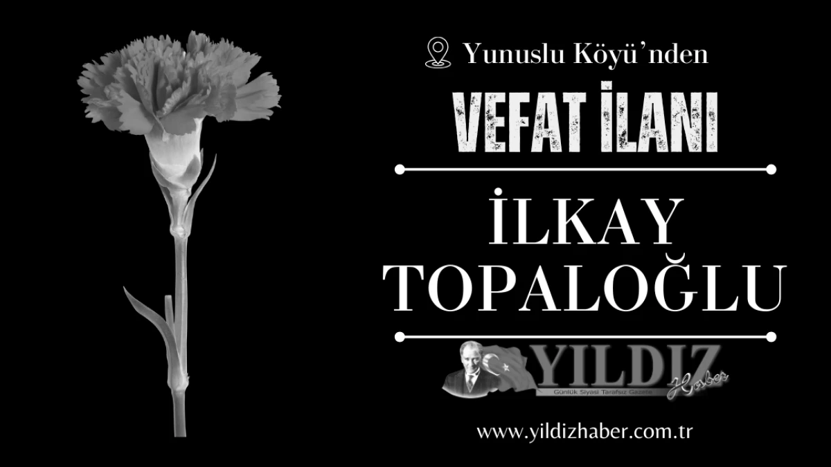 Yunuslu Köyü'nden, Topaloğulları'ndan, Mehmet Topaloğlu’ nun eşi; Rüştü Topaloğlu’ nun gelini; merhum Necati Duman’ın kızı İlkay Topaloğlu vefat etti.