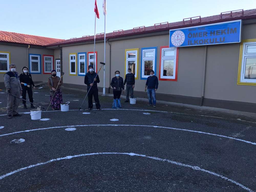 İmece usulü okulun iç ve dış cephesini boyadılar