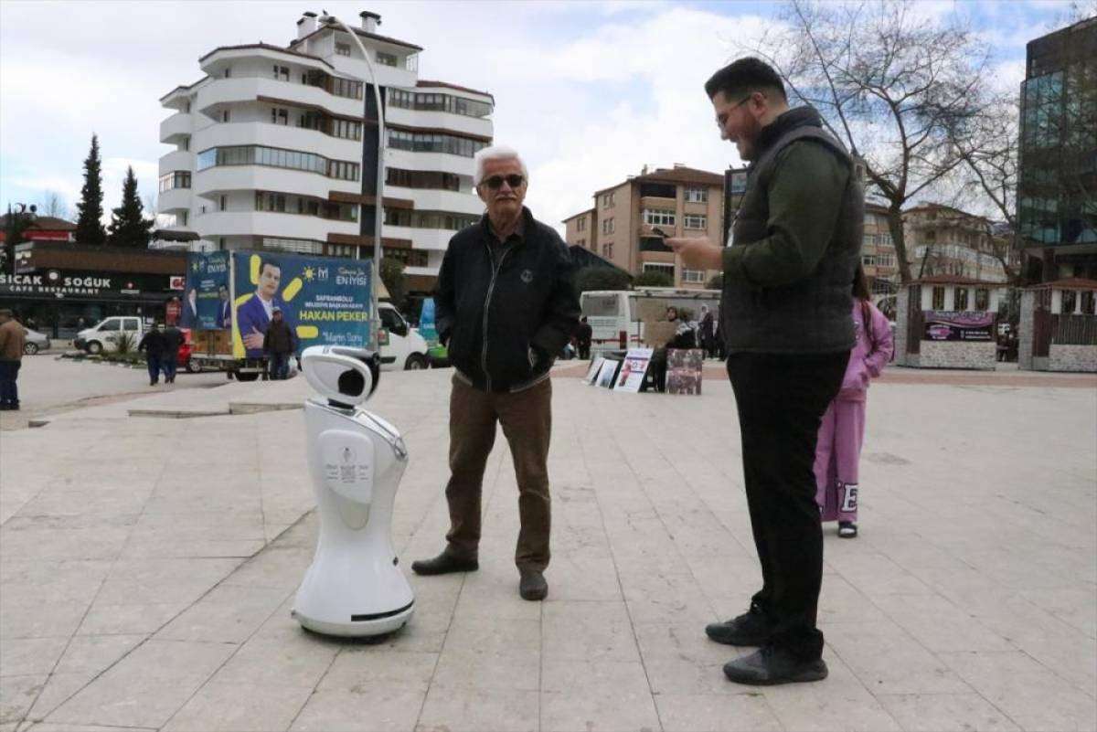 Karabük'ün Safranbolu ilçesinde 31 Mart Mahalli İdareler Seçimleri öncesi insansı robotla anket yapıldı.