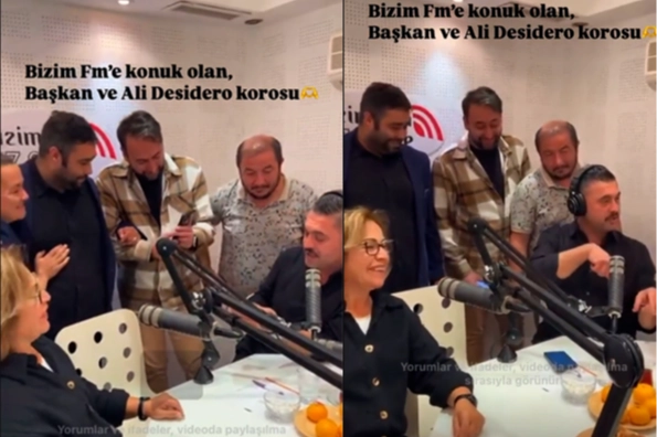 Mikrofona neşeli şarkılar söyleyen CHP’li Kabadayı çalışma arkadaşlarını da yanına alarak MFÖ ekibinin Ali Desidoro şarkısını Belediye Çalışanları ve bir mahalle muhtarıyla Bizim FM Canlı yayınında yüksek kahkahalar eşliğinde yaşanılanlar ise sosyal medyada paylaşıldı.