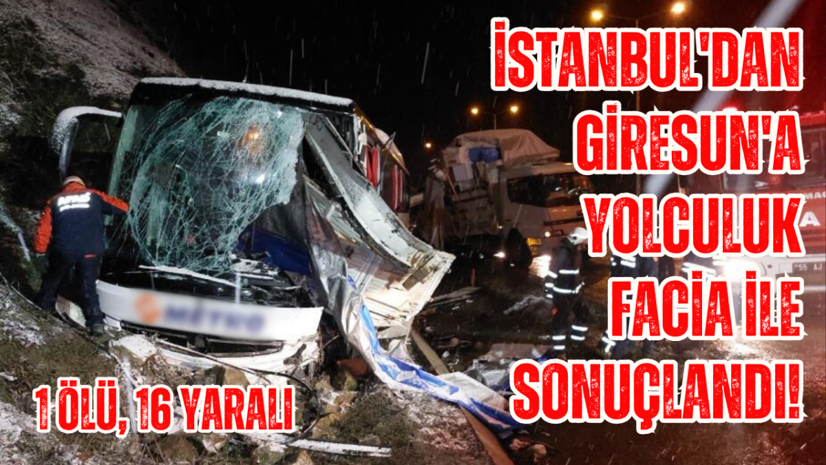 İstanbul'dan Giresun'a giden yolcu otobüsünün Samsun'da kamyona çarptığı kazada otobüs şoförü olay yerinde hayatını kaybetti, 16 yolcu yaralandı.