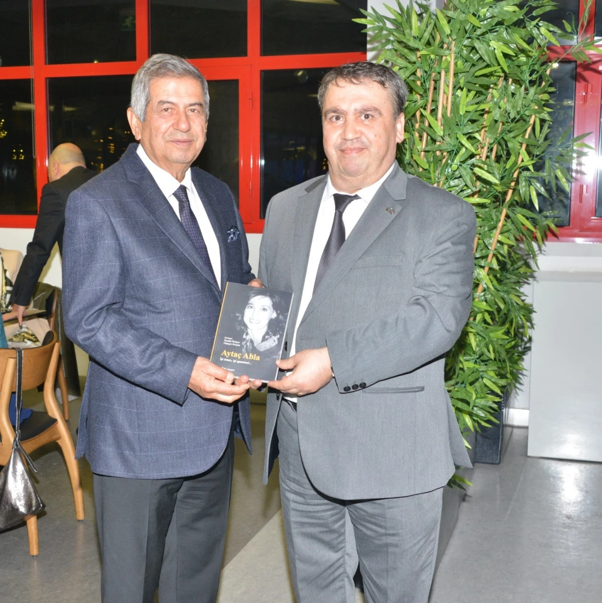 EMD İzmir Şubesi Başkanı Murat Demircan, ESBAŞ Yönetim Kurulu Başkan Vekili Dr. Faruk Güler’e derneğin yayını Aytaç Abla kitabını takdim etti.