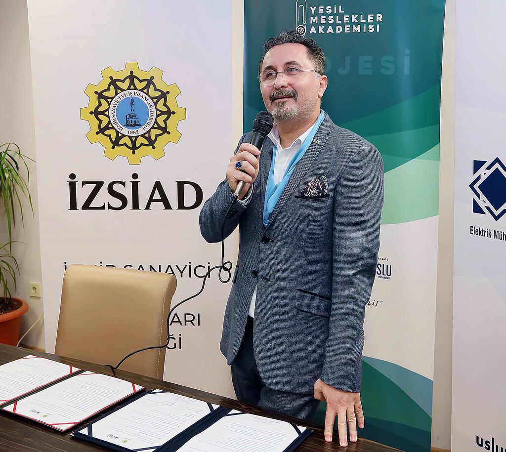 Projenin detaylarına ilişkin bilgi veren Hüseyin Cengiz, 18 ila 25 yaş arasındaki meslek lisesi ve üniversite mezunları ile öğrenci gençleri hedeflediklerini belirtti. Gençlerin sürdürülebilir enerji teknolojileri, döngüsel ekonomi ve yeşil üretim gibi gelişen trendlerin merkezindeki mesleklere hazırlanacağını vurgulayan Cengiz, “Projemizin 2026 yılının ilk 6 ayını kapsayacak 1.döneminde çevrim içi eğitim programımızla yeşil dönüşüm odaklı geleceğin trendleri ve meslekleri hakkında gençlerimizin bilgi, farkındalık ve mesleki hazırlık düzeyini artırmayı hedefliyoruz. Projenin en önemli çıktılarından biri de eğitimleri başarıyla tamamlayan katılımcılarımızı dahil edeceğimiz Yeşil Meslekler Veri Havuzu olacaktır. Bu havuz sayesinde, nitelikli genç insan kaynağımızla İZSİAD üyesi firmalarımız ve diğer paydaşlarımız arasında kalıcı bir istihdam köprüsü kuracağız” dedi.