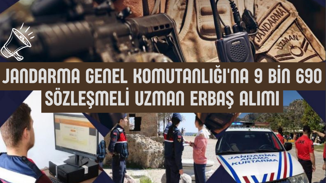 Jandarma ve Sahil Güvenlik Akademisi Başkanlığı, Jandarma Genel Komutanlığı'na toplam 9 bin 690 sözleşmeli uzman erbaş alımı yapılacağını duyurdu.