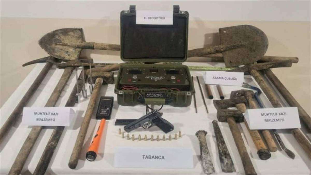 Zanlılar gözaltına alınırken, yanlarında bulunan bir tabanca ile 26 parça kazı malzemesine el konuldu.