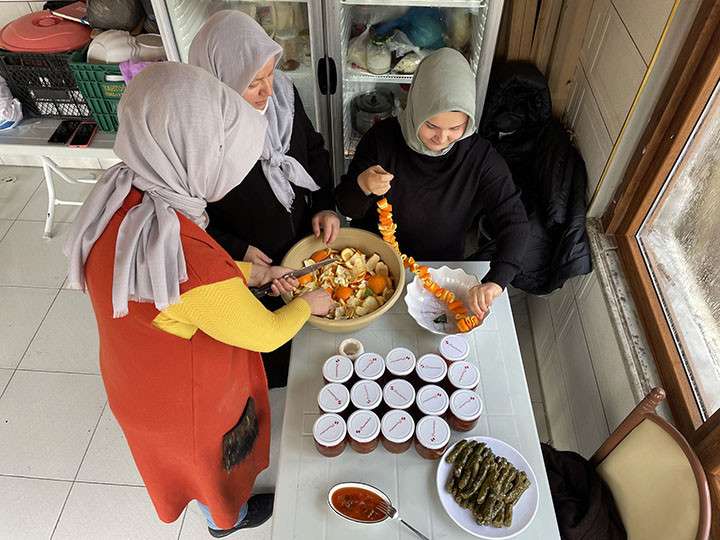 İki çocuk annesi Arzu Dikyol ise ihtiyaç sahibi kadınların evdeki ürünlerini ziyan etmeden halka sunabildiği aktardı.