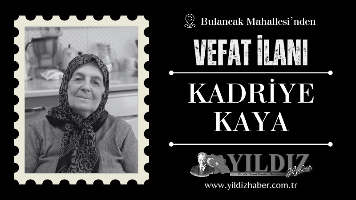 Kadriye Kaya’nın cenazesi, 07 Haziran 2025 Cumartesi günü (bugün), öğle namazına müteakip Bulancak Eski Camii'nde kılınacak cenaze namazının ardından Bulancak Yeni Mezarlığı'nda defnedilecek.