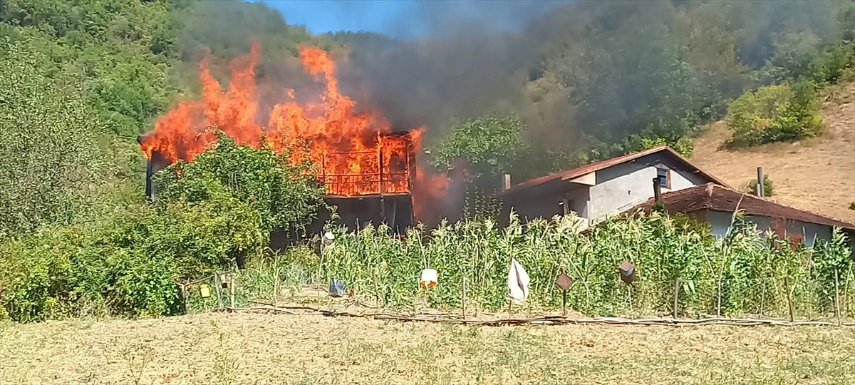 Karabük'ün Safranbolu ilçesinde evde çıkan ve ormana sıçrayan yangın, güvenlik kamerasınca görüntülendi.