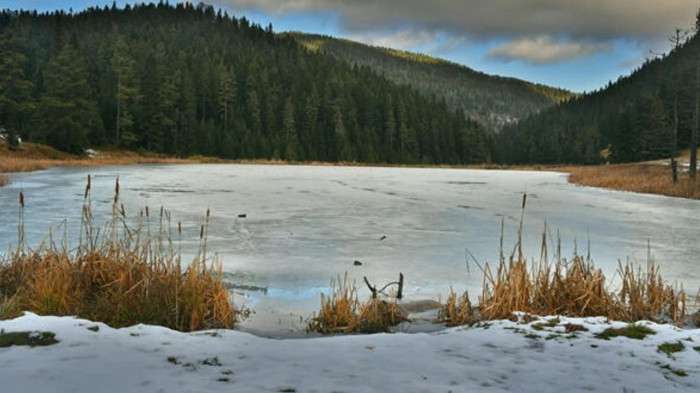 Doğal güzellikleriyle ön plana çıkan ve Keltepe Kayak Merkezi yakınlarında yer alan göletin yüzeyi, hava sıcaklıklarının sıfırın altına düşmesiyle buz tuttu.