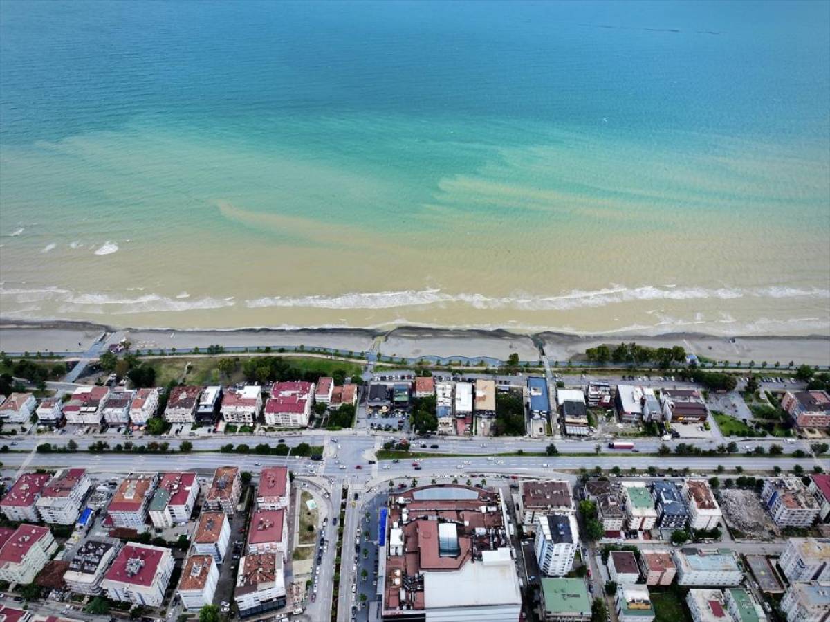 Denizin plaja yakın bölümleri kahverengiye dönüşürken sahile uzak bölgelerde ise mavi ve turkuaz renkler hakim oldu.