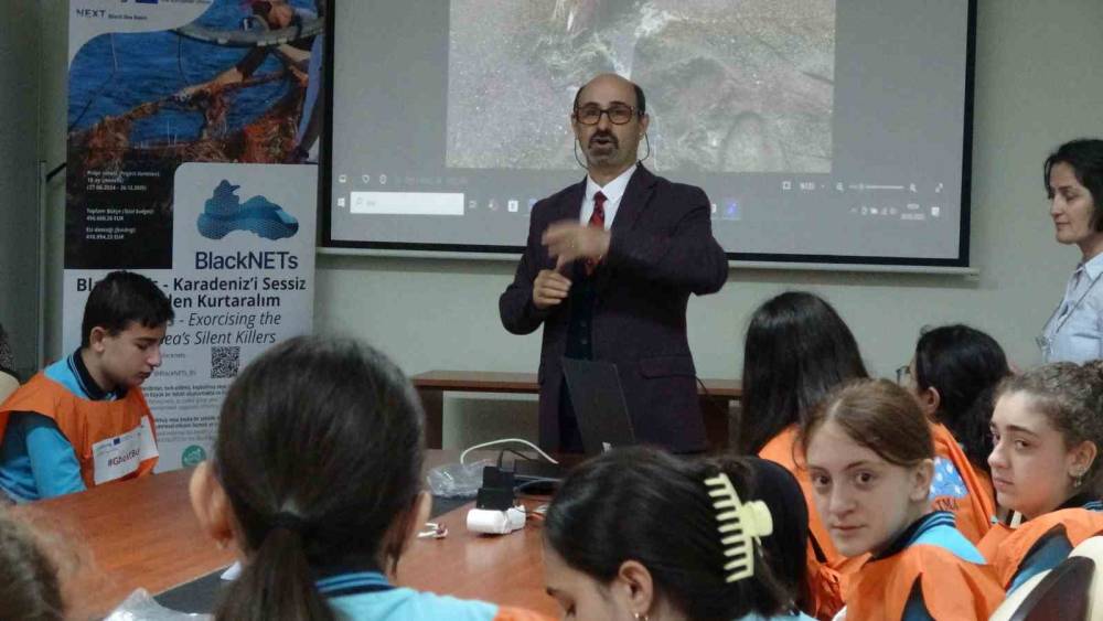 Avrupa Birliği (AB) BlackNETs ’Karadeniz’i Sessiz Katiller Hayalet Ağlardan Kurtarma Projesi’ kapsamında KTÜ Deniz Bilimleri Fakültesi Çamburnu Kampüsü’nde öğrencilere yönelik deniz ekosistemleri, biyoçeşitlilik, hayalet ağlar, sorun ve çözüm konulu eğitim verildi.