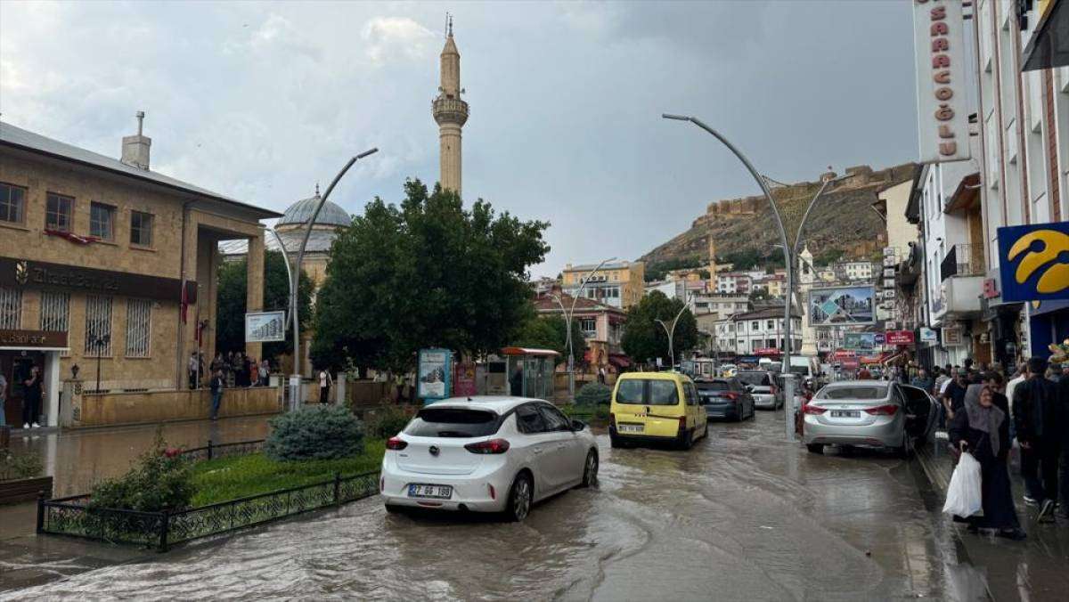 Bayburt'ta etkili olan sağanak nedeniyle bazı cadde ve sokakları su bastı.