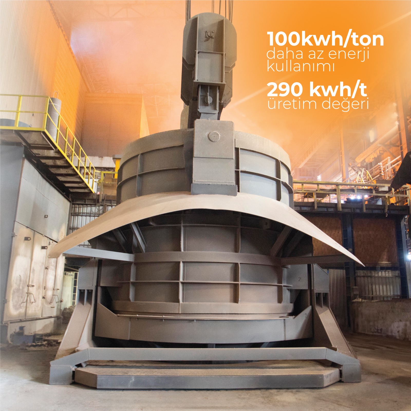 Bakırel, İzmir Aliağa’da bulunan çelikhane tesisimiz, Türkiye’de alanında en yeni teknolojilere sahip üretim tesisleri arasında yer alıyor. Elektrikli ark ocağı teknolojisi ile hurdadan kütük demir üretimi gerçekleştiriyoruz. Fescon sistemine sahip 100 tonluk elektrikli ark ocağımız sayesinde atık ısı geri kazanımı sağlıyor ve üretimde yüzde 15 ila yüzde 30 arasında enerji tasarrufu elde ediyoruz.