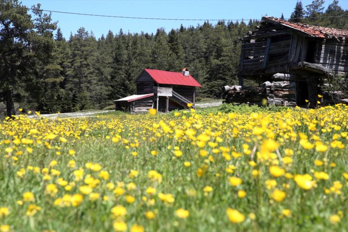 Rengarenk çiçekleri ve çivi kullanılmadan yapılan kütük evleriyle Kastamonu'nun Araç ilçesindeki Fındıklı ve Gölcük yaylaları, ziyaretçilerine baharın tüm güzelliklerini sunuyor
