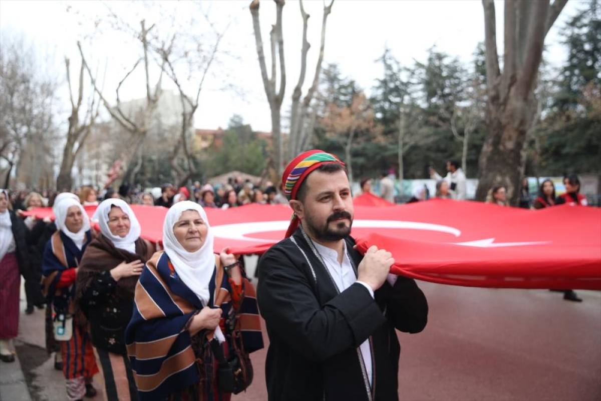 Kışla Parkı önünde bir araya gelen kadın dernekleri üyeleri ile vatandaşlar, önlerinde kağnı, ellerinde Türk bayraklarıyla Cumhuriyet Meydanı'na kadar yürüdü.
