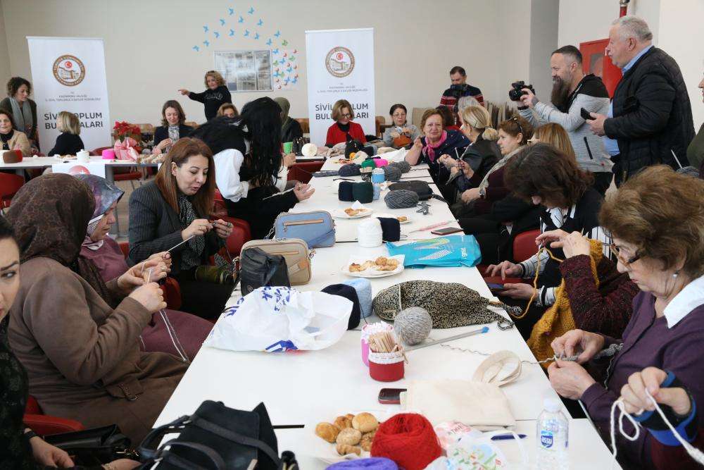 İl Sivil Toplumla İlişkiler Müdürlüğünce başlatılan "Gönülden Gönüle El Emeği" projesi kapsamında sivil toplum kuruluşlarının kadın üyeleri ve gönüllü kadınlar diz battaniyesi örmeye başladı.