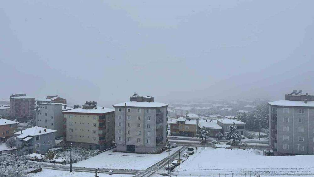 Samsun’un Kavak ilçesinde gece saatlerinde başlayan mevsimin ilk karı, ilçeyi beyaza bürüdü.