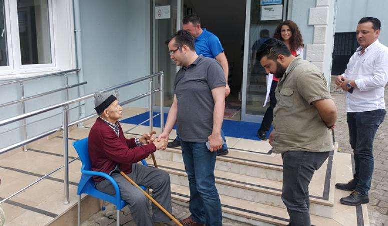 Kurum çalışanlarından bilgi alan Kaymakam Yıldız, Bakım Merkezinde kalan yaşlı ve engelli insanlarımızla sohbet etti.