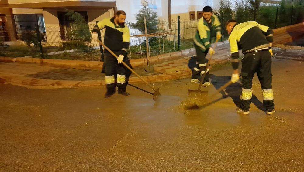 Belediyeden yapılan açıklamaya göre, Keçiören Belediyesi, ilçede yaşanan sağanak yağış sonrası cadde ve sokaklarda oluşan kum, çamur ve diğer atıkların oluşturduğu birikintileri temizlemek için gece boyunca aralıksız çalışma yürüttü.