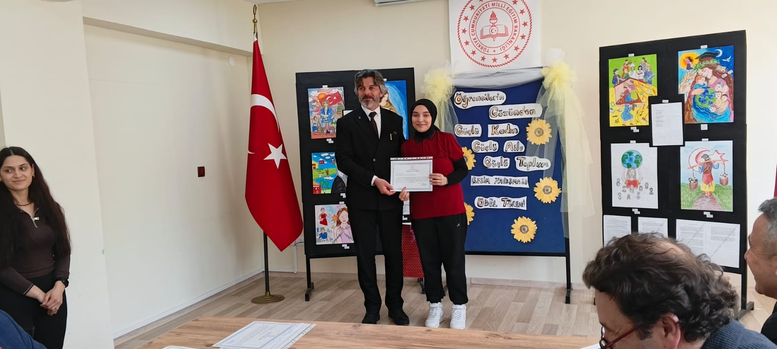 Okul Müdürü Mehmet Ali Yılmaz yaptığı açıklamada, öğrencilerin elde ettiği başarının yalnızca bir dereceyle sınırlı olmadığını vurgulayarak, “Onlar sadece bir derece almadı; duygularını cesaretle ifade etmenin, üretmenin ve inanmanın ne demek olduğunu gösterdi. Biz biliyoruz ki; güçlü kadınların yetiştiği sınıflarda, güçlü aileler filizlenir ve güçlü bir toplum kök salar” ifadelerini kullandı.