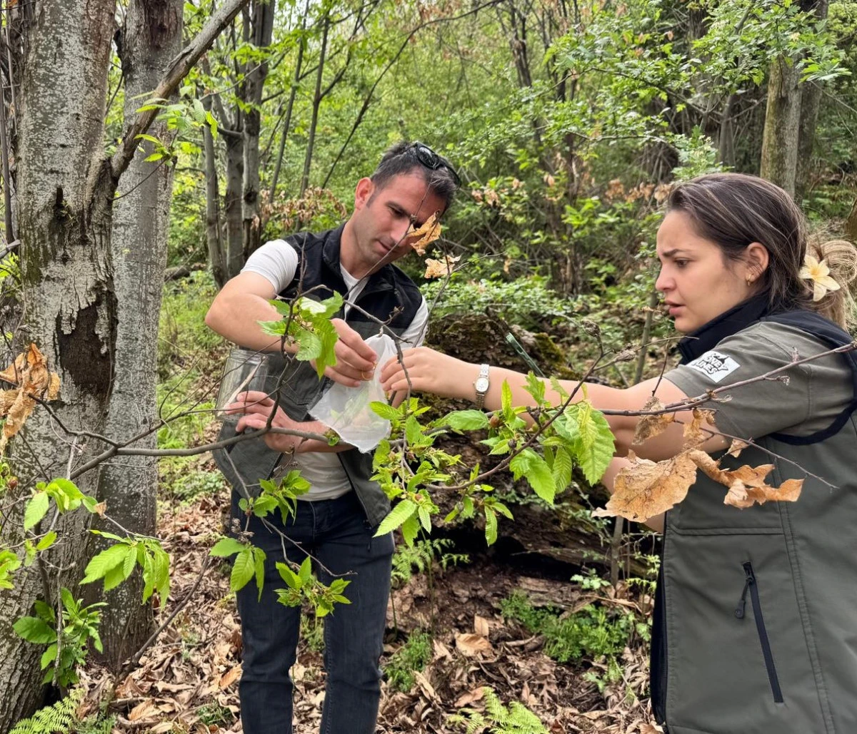 Kestane Gal Arısı (Dryocosmus kuriphilus) zararının yoğun olarak görüldüğü Beydağ İlçesi, Çomaklar Mahallesi'ndeki kestaneliklere Torymus salımı yapıldı.