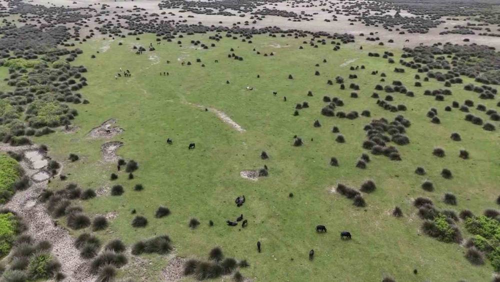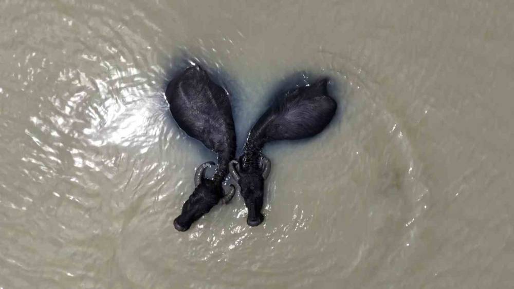 Türkiye’nin en önemli sulak alanlarından biri olan Kızılırmak Deltası’nda açan su papatyaları, özgürce dolaşan develer, atlar, mandalar ile yuvalarına dönen leylekler havadan görüntülendi.