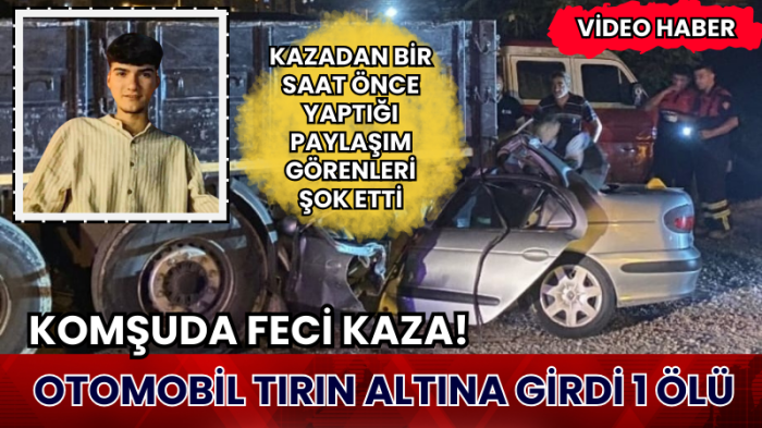 Komşuda feci kaza! Otomobil tırın altına girdi 1 ölü