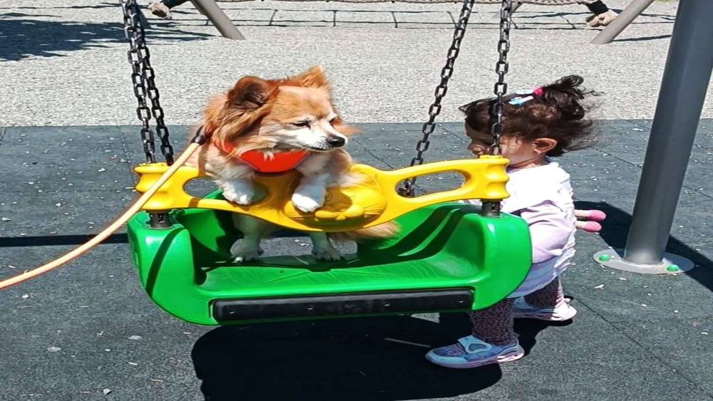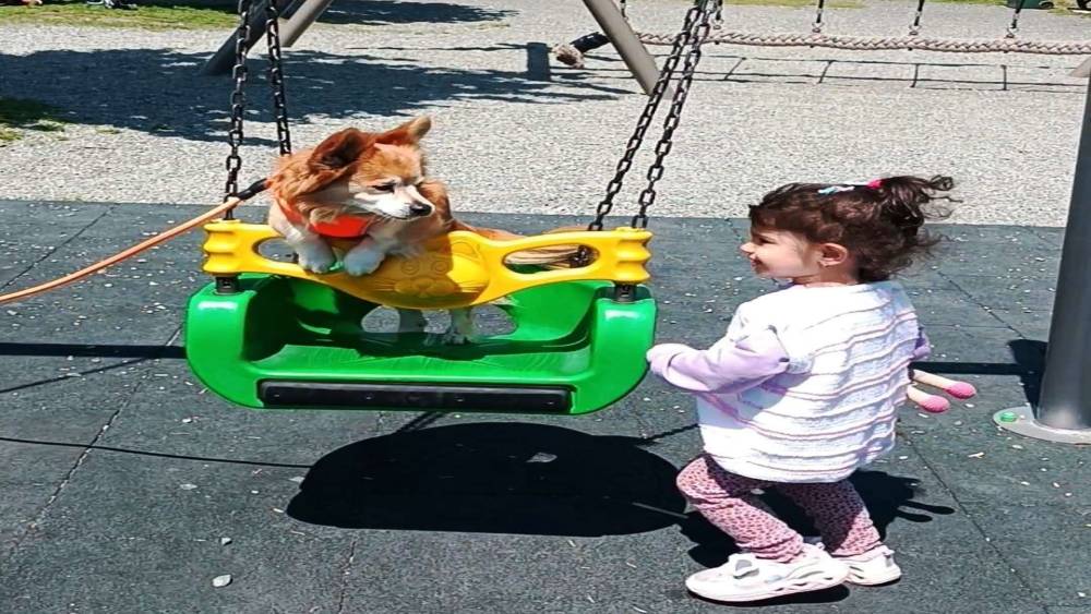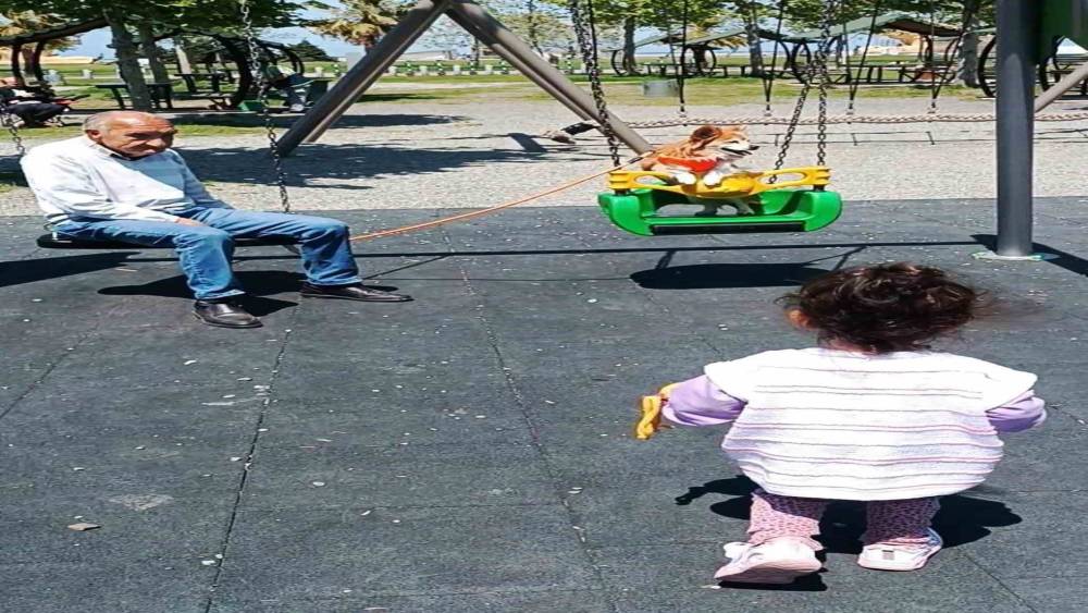 Samsun’da bir vatandaşın evcil köpeğini parkta dönme dolaba ve salıncağa bindirmesi görenleri tebessüm ettirdi.