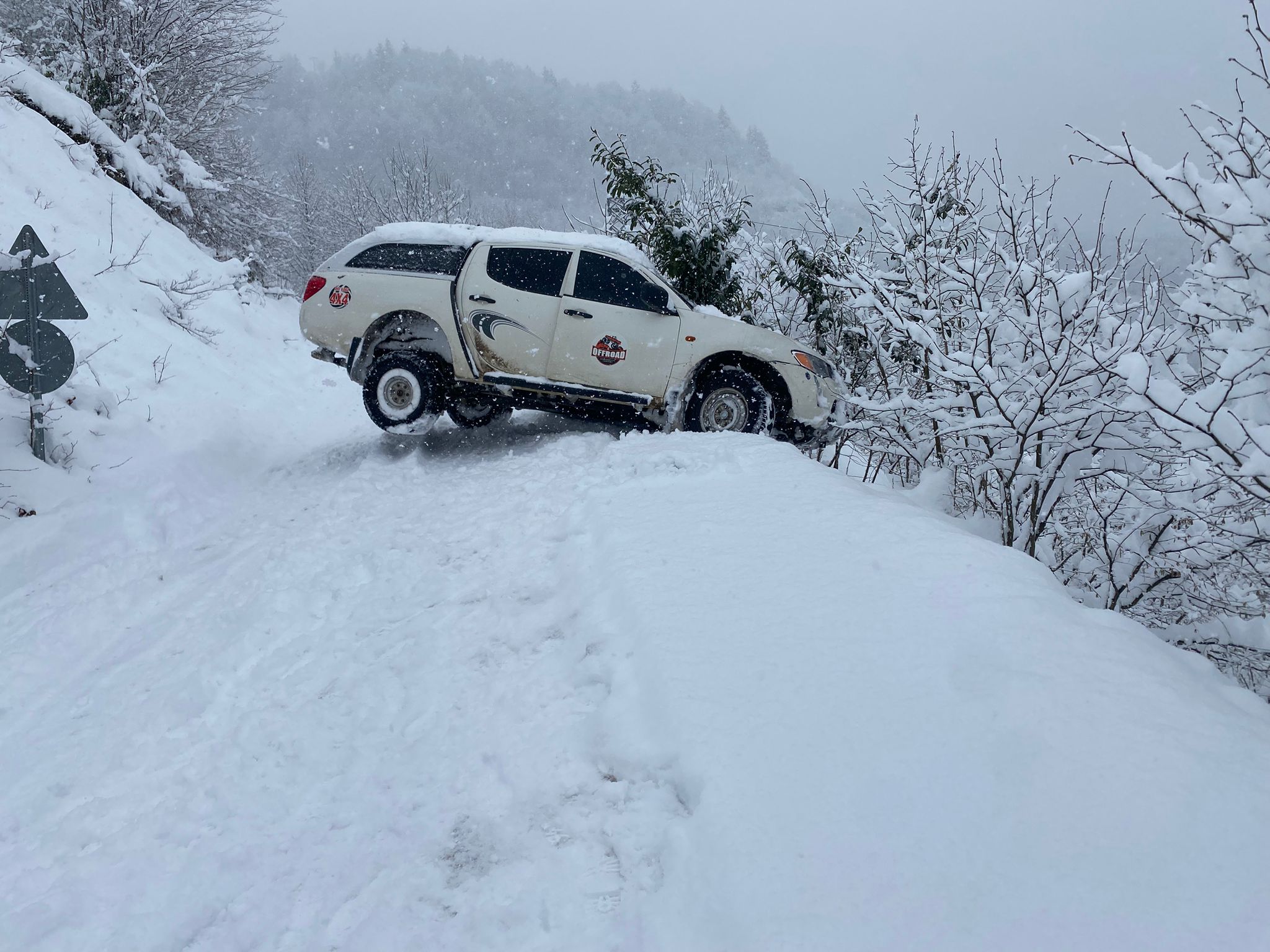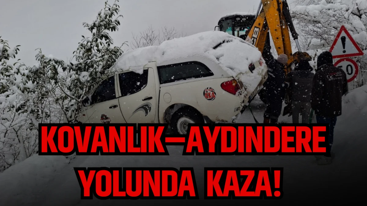 Kovanlık–Aydındere yolu üzerinde yoğun kar yağışı ve aşırı kaygan zemin nedeniyle bir araç yoldan çıktı.