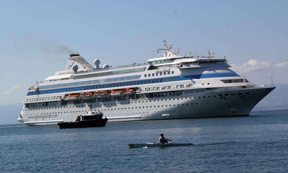 SİNOP (AA) - Rusya'nın Soçi limanından hareket eden Panama bandıralı kruvaziyer "Astoria Grande", bu yıl 8. kez Sinop Limanı'na demirledi."Astoria Grande", 899 yolcusuyla, Türkiye'de İzmir'den sonra ikinci durağı olan Sinop'ta bir gün kalacak.İl Kültür ve Turizm Müdürlüğü yetkilileri ile turizm acentesi görevlilerince karşılanan gemi yolcuları, kentte kaldıkları sürede tarihi ve turistik yerleri gezecek.Kruvaziyerin, Sinop'un ardından Soçi'ye hareket edeceği öğrenildi.