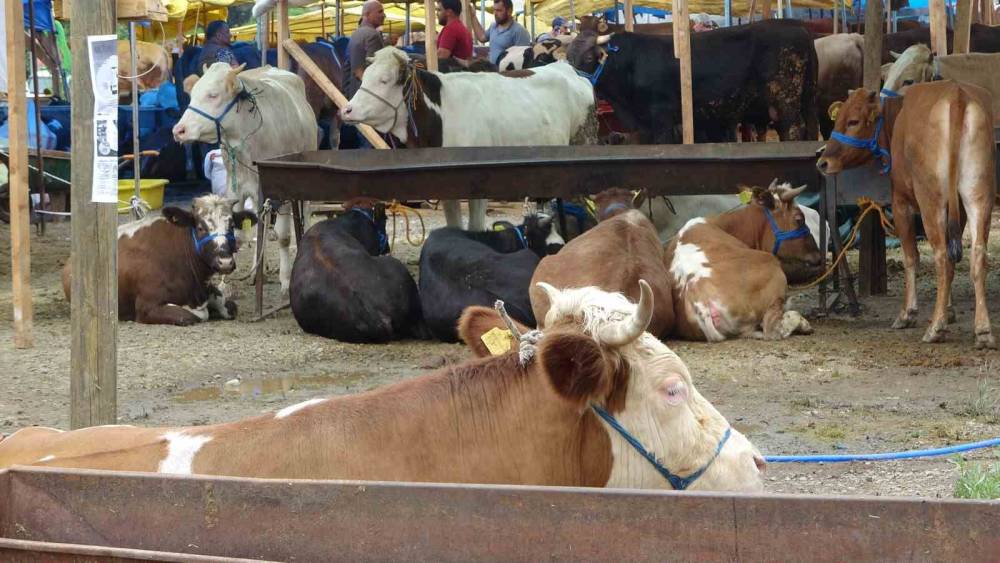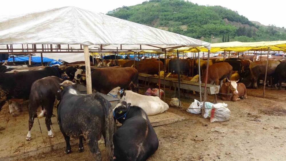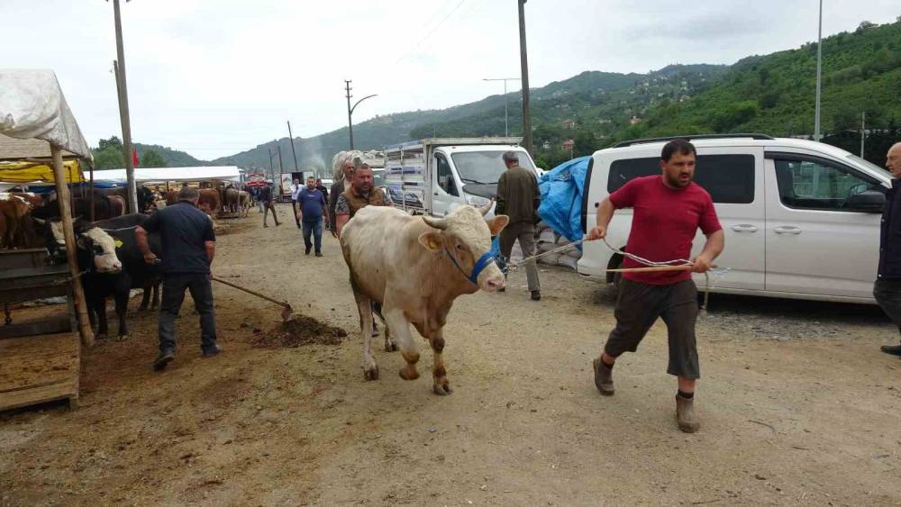 Trabzon’da kurban pazarında satıcı ile alıcı arasındaki pazarlık diyaloğu renkli görüntüler oluşturdu.