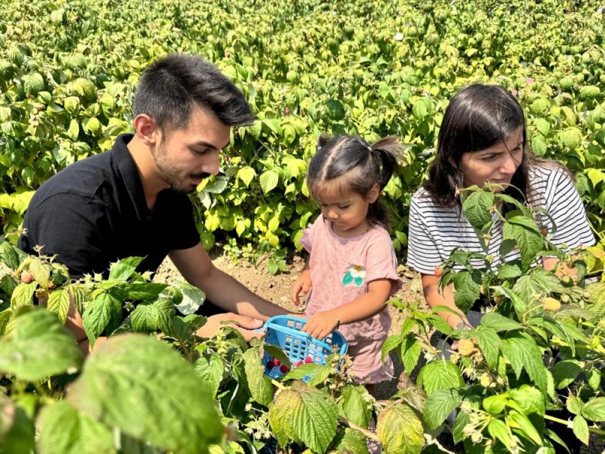 Ailesiyle meyve toplayan Mücahit Coşkun, kızının ahududunu çok sevdiğini için sürekli bahçeye geldiklerini belirterek, meyveleri dalından toplayarak yemenin tadına vardıklarını kaydetti.
