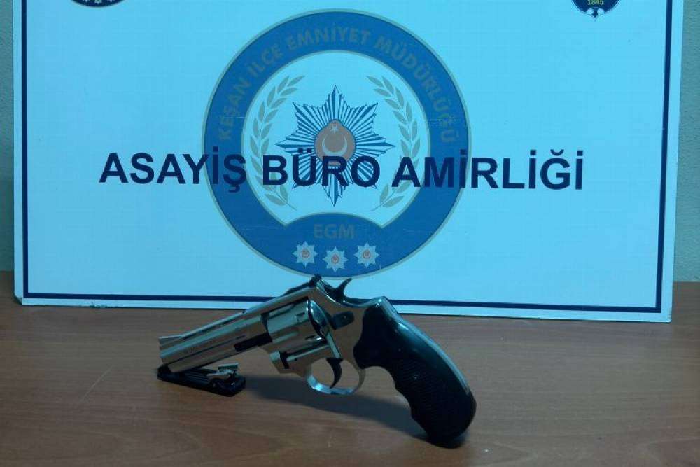 Keşan'da polis ekipleri tarafından yapılan kontrolde bir araç sürücüsünün bagajında kuru sıkı tabanca ele geçirildi.