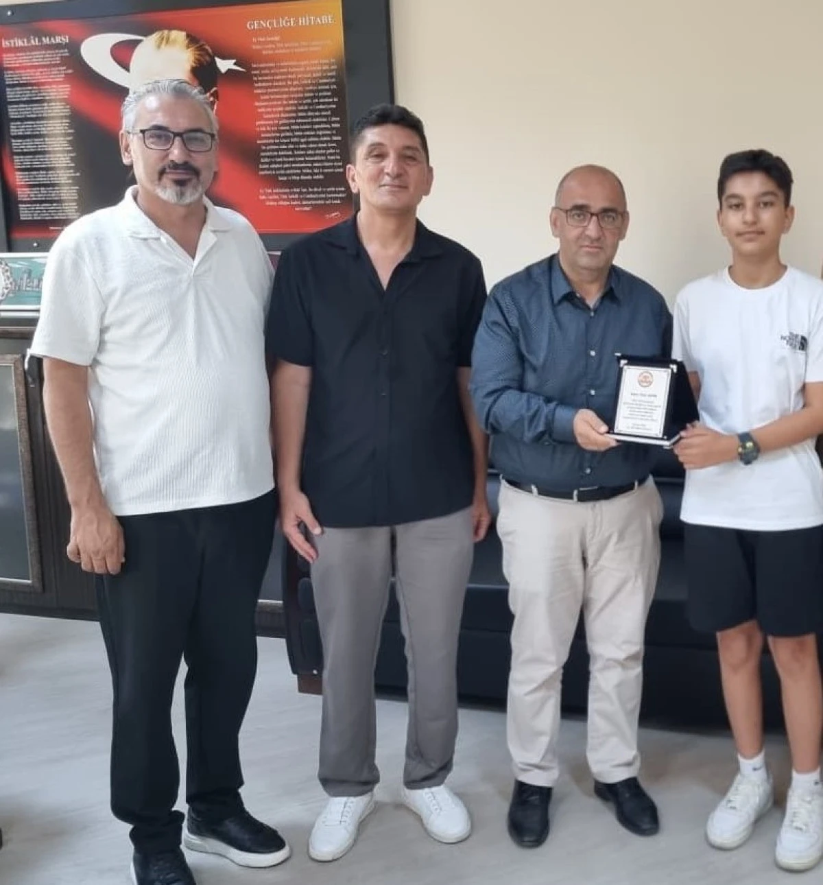 Bu tarihi başarı dolayısıyla Çiğli İlçe Milli Eğitim Müdürü Şuayip Üner, Onur Şahin’i makamında ağırladı. Ziyarette Onur’a okul müdürü İsmail Aslan ve Onur’un anne-babası da eşlik etti.