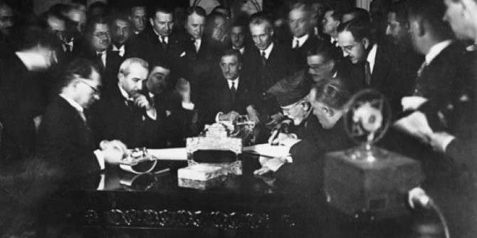 1. Dünya Savaşı sonucunda 24 Temmuz 1923'te İsviçre'nin Lozan şehrinde imzalanan antlaşmaya, Türkiye Büyük Millet Meclisi (TBMM) temsilcileriyle Birleşik Krallık, Fransa, İtalya, Japonya, Yunanistan, Romanya, Bulgaristan, Portekiz, Belçika ve Yugoslavya temsilcileri katıldı.