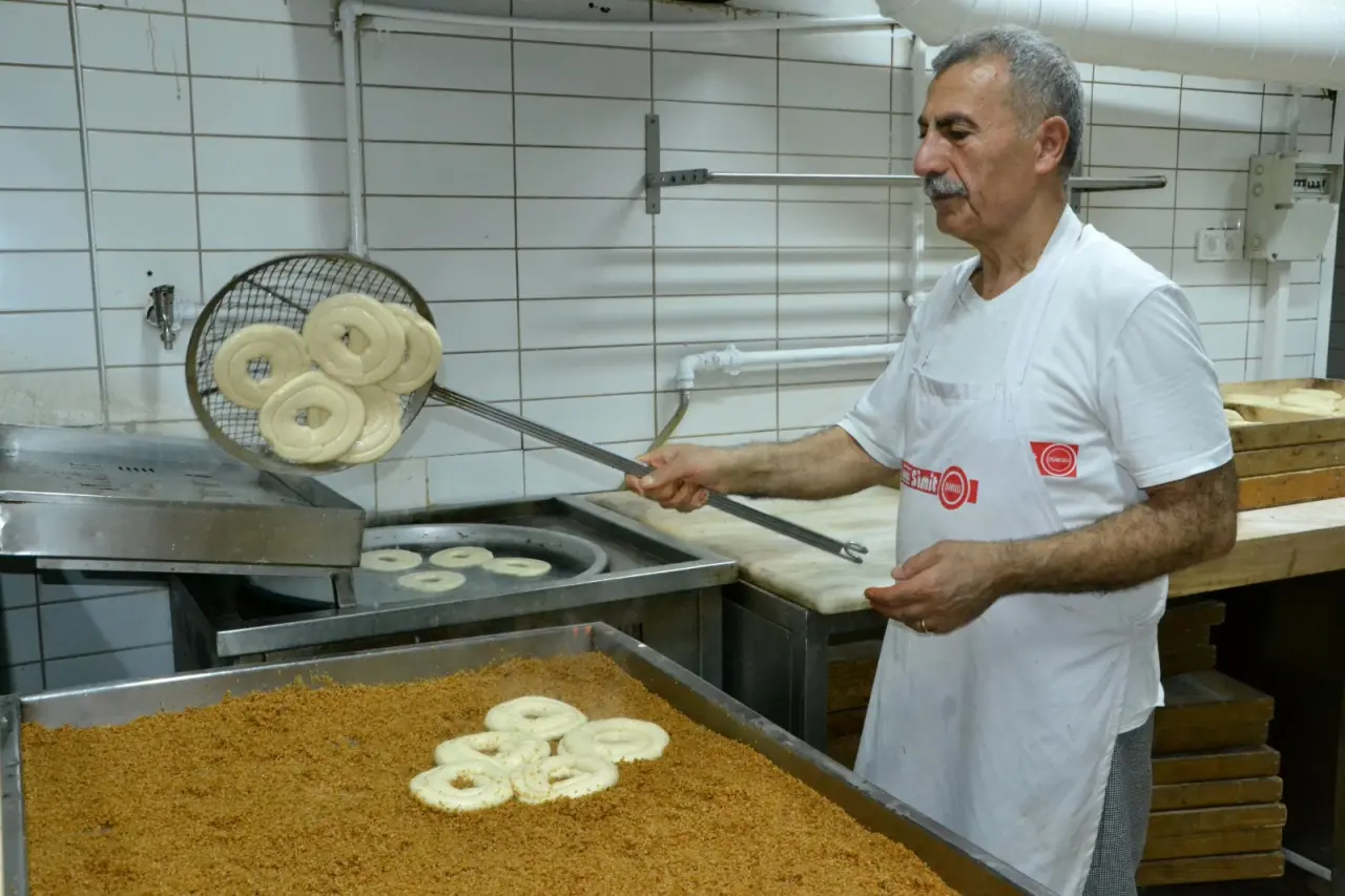 Manisalıların vazgeçilmezi ismini yassı yapısından alan taban simidi, kentteki fırınlarda un, su, nohut mayası ve susam kullanılarak üretiliyor.