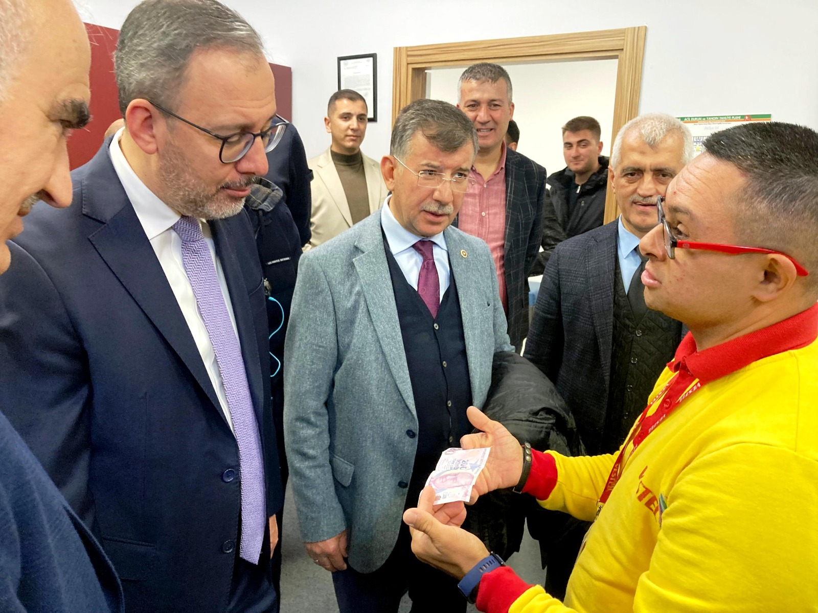 Engelli bireylerden bir çalışan ise Cumhurbaşkanı Recep Tayyip Erdoğan’a yaptığı ziyaret sırasında kendisine verdiği 200 TL parayı harcamak yerine cüzdanında hatıra olarak sakladığını cüzdanından çıkarttığı o parayı komisyon başkanı Kasapoğlu ve üyelere göstermesi şaşkınlık yarattı. Kasapoğlu, neden parayı harcamadın sorusuna “Bu parayı veren devletimizin üst düzeyindeki Cumhurbaşkanımız Erdoğan olduğu için harcamaya kıyamadım ”dedi..