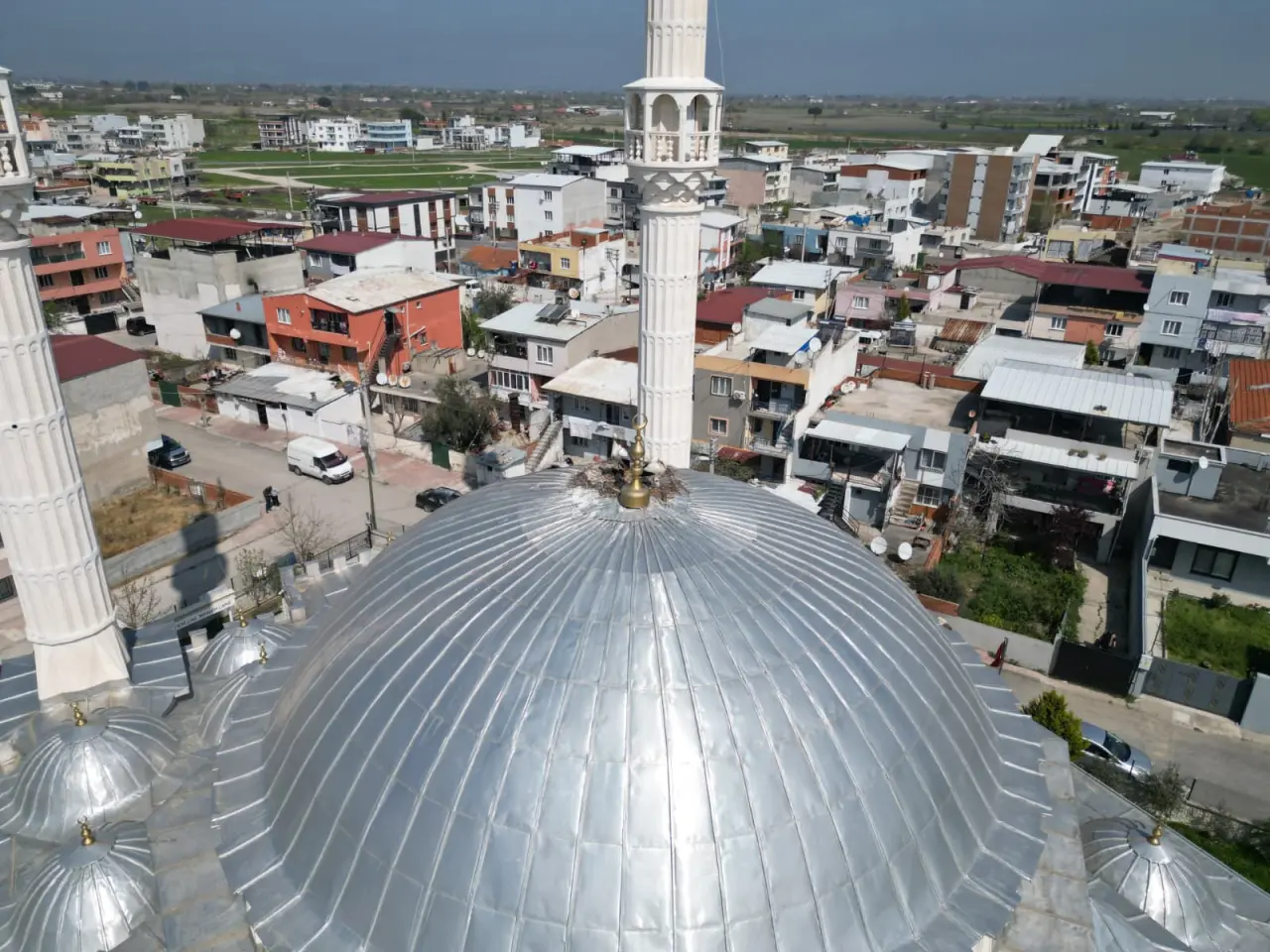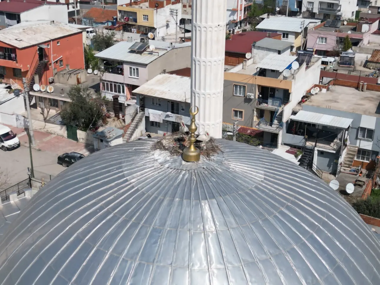 Ağaç dallarından, cami kubbesine yuva yapan leylekler, her yıl burada kuluçkaya yatıyor. Sonbahara kadar cami kubbesini süsleyen leylek yuvası çevrede ilgi ile izleniyor.